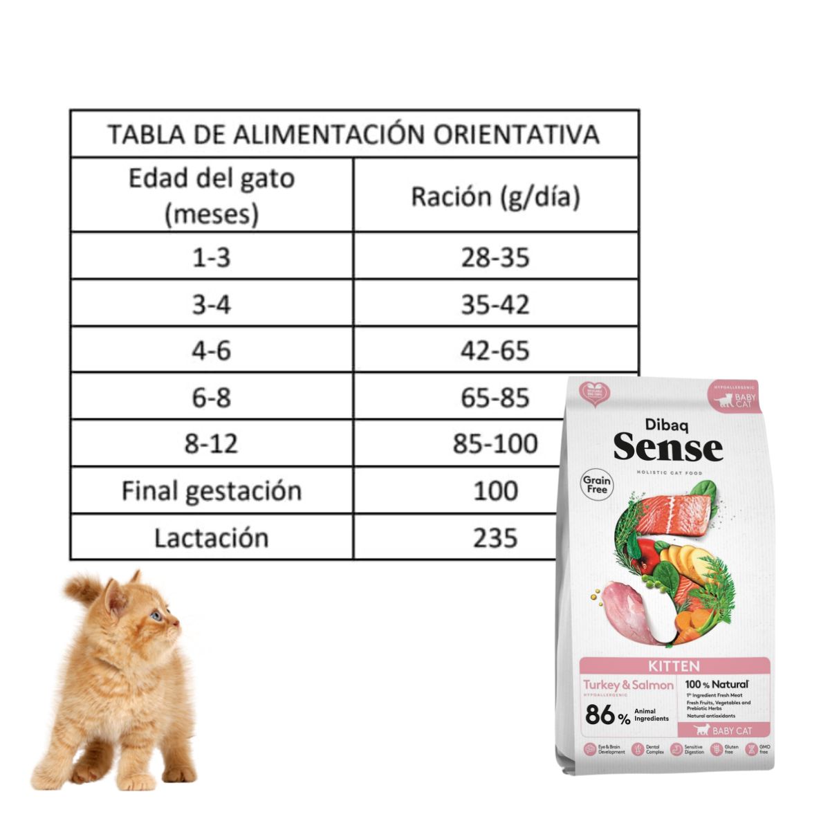 Dibaq Sense Cat Grain Free Kitten ofrece una nutrición completa, equilibrada y adaptada a las necesidades específicas de los gatitos, asegurando que crezcan sanos, felices y llenos de vitalidad.