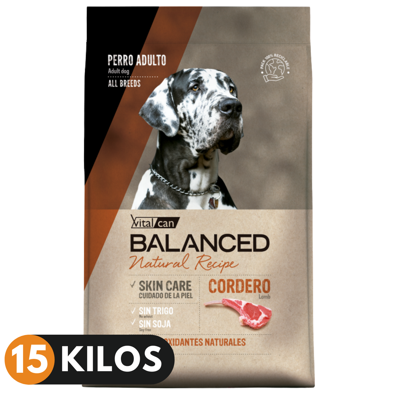 Harina de carne y hueso de cordero, arroz, arvejas, gluten meal, aceite de pollo, pulpa de remolacha, hidrolizado de vísceras de pollo, aceite de pescado, levadura de cerveza, zeolita, sal, inulina, extracto de Yucca schidigera, polifenoles, ácido propiónico, paredes de levadura, antioxidantes naturales (extracto de romero, lecitina, tocoferoles), glucosamina, metilsufonilmetano, nucleótidos de levadura, hexametafosfato de sodio. Vitaminas: A, D3, E, K3, B1, B2, B6, B12, colina, biotina, ácido fólico, ácido nicotínico, ácido pantoténico, vitamina C. Minerales: yodo, hierro, manganeso, cobre, selenio y zinc.