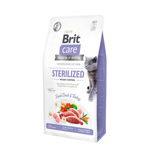 Brit Care Sterilized Weight Control para Gatos posee una formula rica en fibras y proteínas, baja en grasas ayuda a mantener el peso corporal ideal.