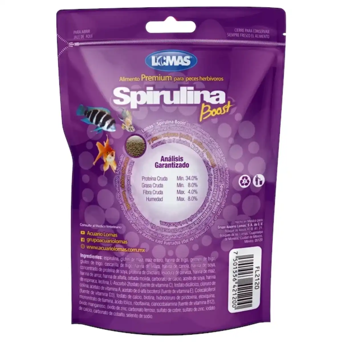 El alimento Lomas Spirulina Boost 70 Gr es adecuado para peces africanos y peces vivíparos como molies, platties y espadas.
