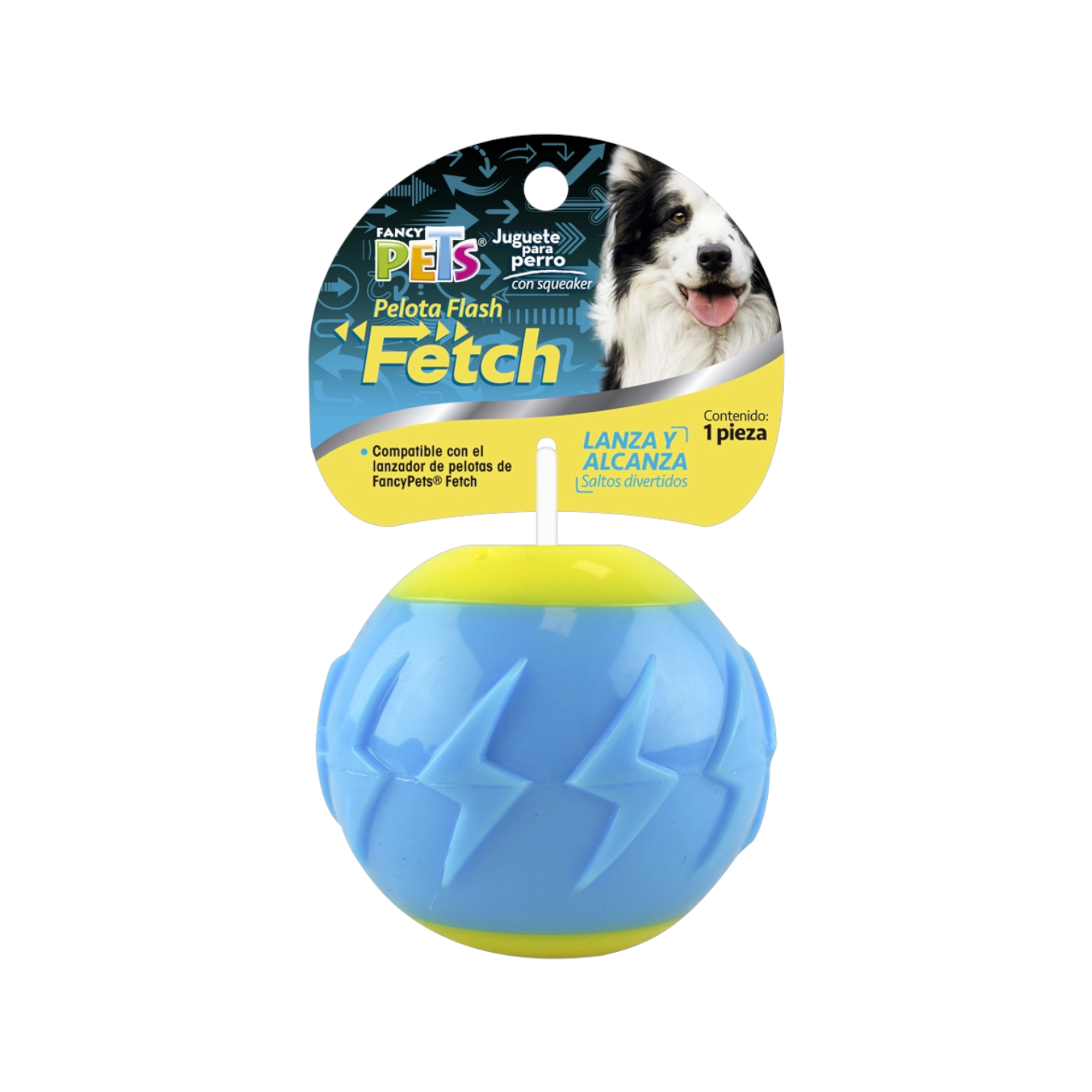 – De colores azul y amarillo, los colores que los perros son capaces de distinguir perfectamente, es por ello que le llamará mucho su atención.