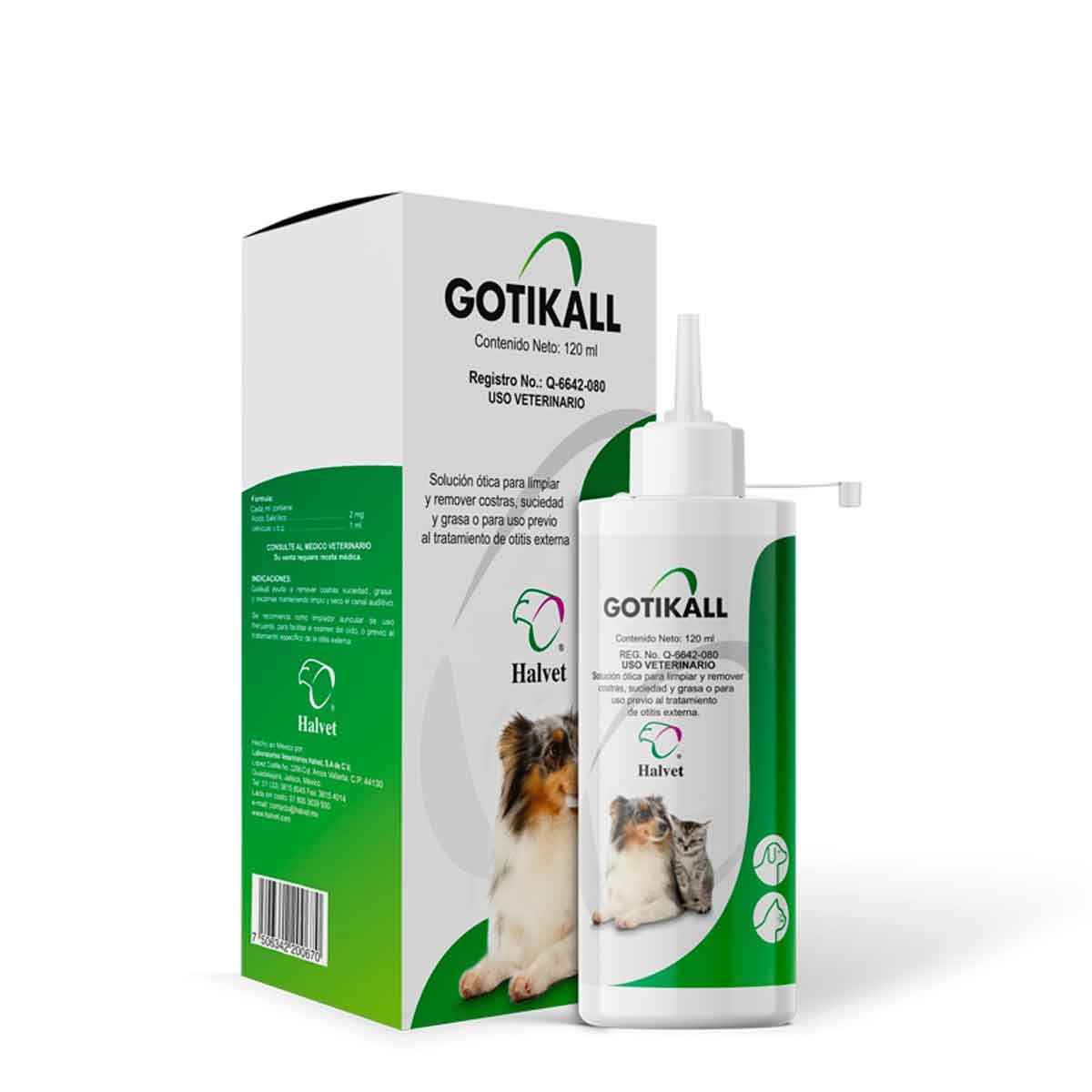 Gotikall es una solución ótica para limpiar y remover costras, suciedad y grasa o para uso previo al tratamiento de otitis externa.