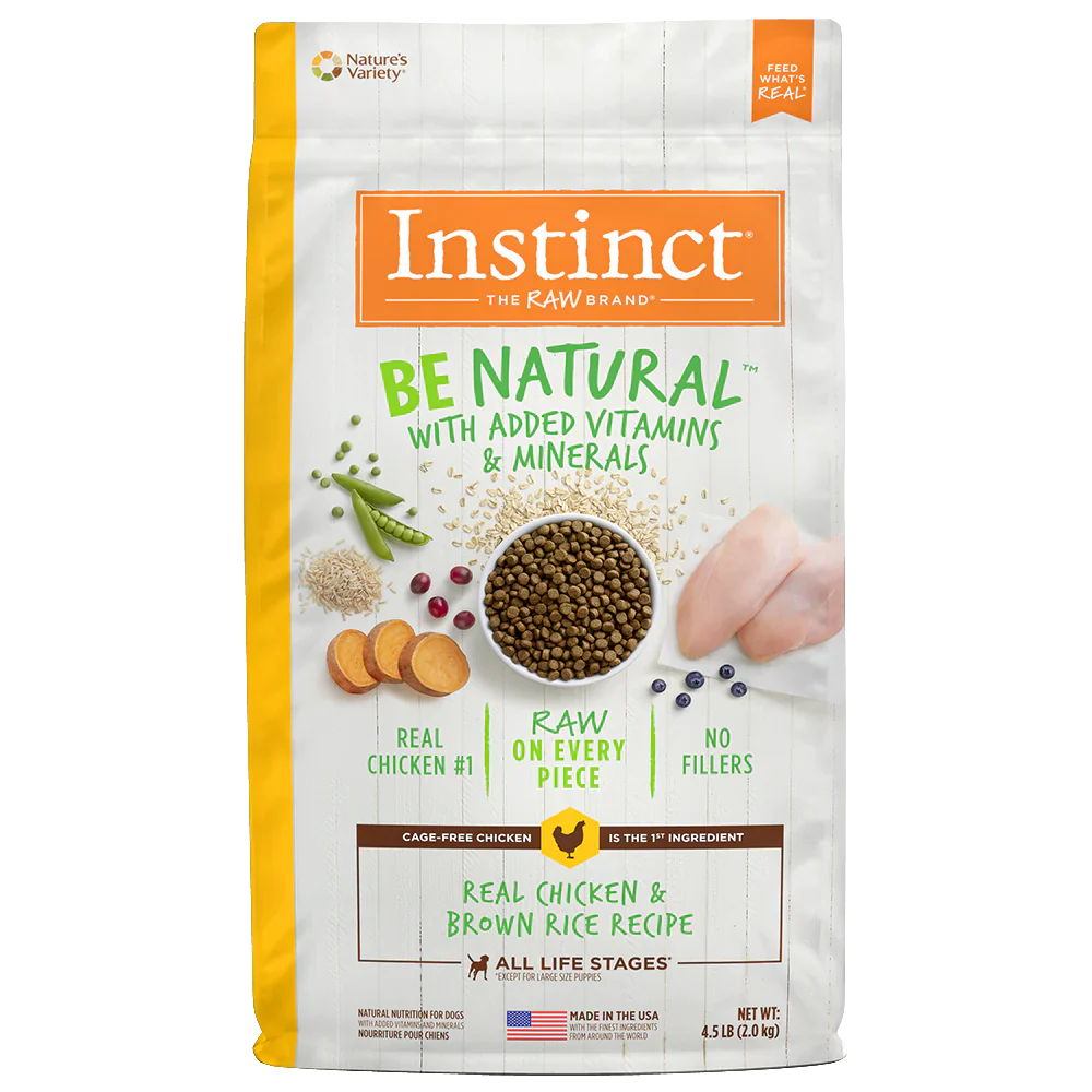 Instinct Be Natural – Pollo para Perros es un alimento premium para perros cuidadosamente equilibrado con carne de pollo libre de jaula. La receta Instinct® Be Natural ™ Real de pollo y arroz integral no contiene harinas de relleno, maíz, trigo, soya o subproductos ni conservadores y colores…