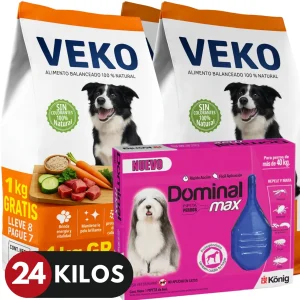 Dominal MAX Perros es una solución pulguicida y garrapaticida de aplicación tópica para perros, con efecto ambiental y acción prolongada. Su fórmula combina Imidacloprid, Permetrina y Fenoxicarb para eliminar y prevenir infestaciones por pulgas, garrapatas y piojos, además de repeler moscas y mosquitos transmisores del gusano del corazón.