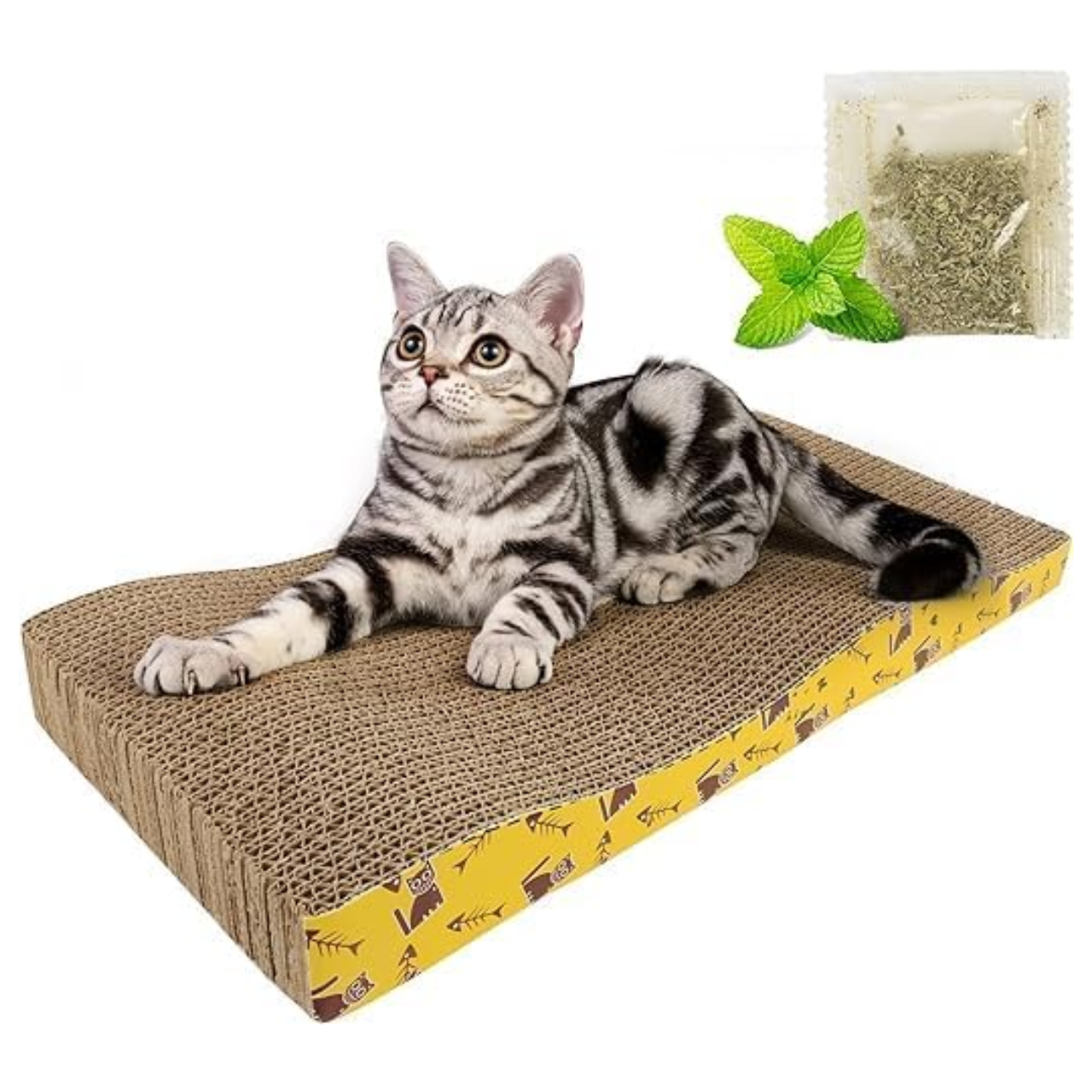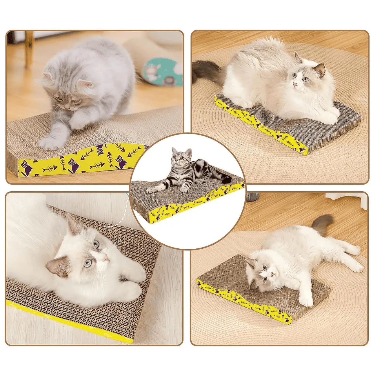 El Rascador de Cartón Ondulado está diseñado para satisfacer las necesidades naturales de rascado de tu gato, ayudando a mantener sus uñas saludables y a reducir el estrés. Su forma y tamaño generoso proporcionan un área amplia para que tu felino se estire, rasque y repose cómodamente.
