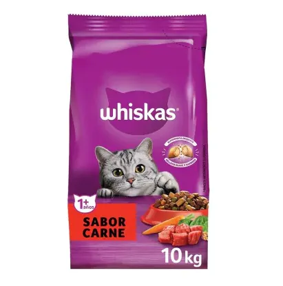 Whiskas® Carne de Res combina nutrientes esenciales con irresistibles croquetas y crujientes empanaditas rellenas. Su fórmula contiene niveles adecuados de minerales que cuidan sus vías urinarias, Omega 6 para un pelaje brillante y aminoácidos esenciales para la salud de su corazón, cerebro y ojos.